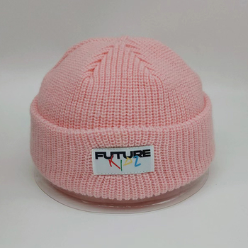 2025 moda estilo corto Color Rosa acrílico personalizado acanalado gorro tejido etiqueta gorro Unisex